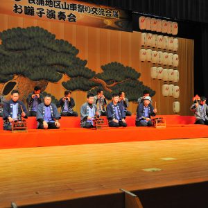 半田市内6組、近隣市町2組の山車組によるお囃子演奏
