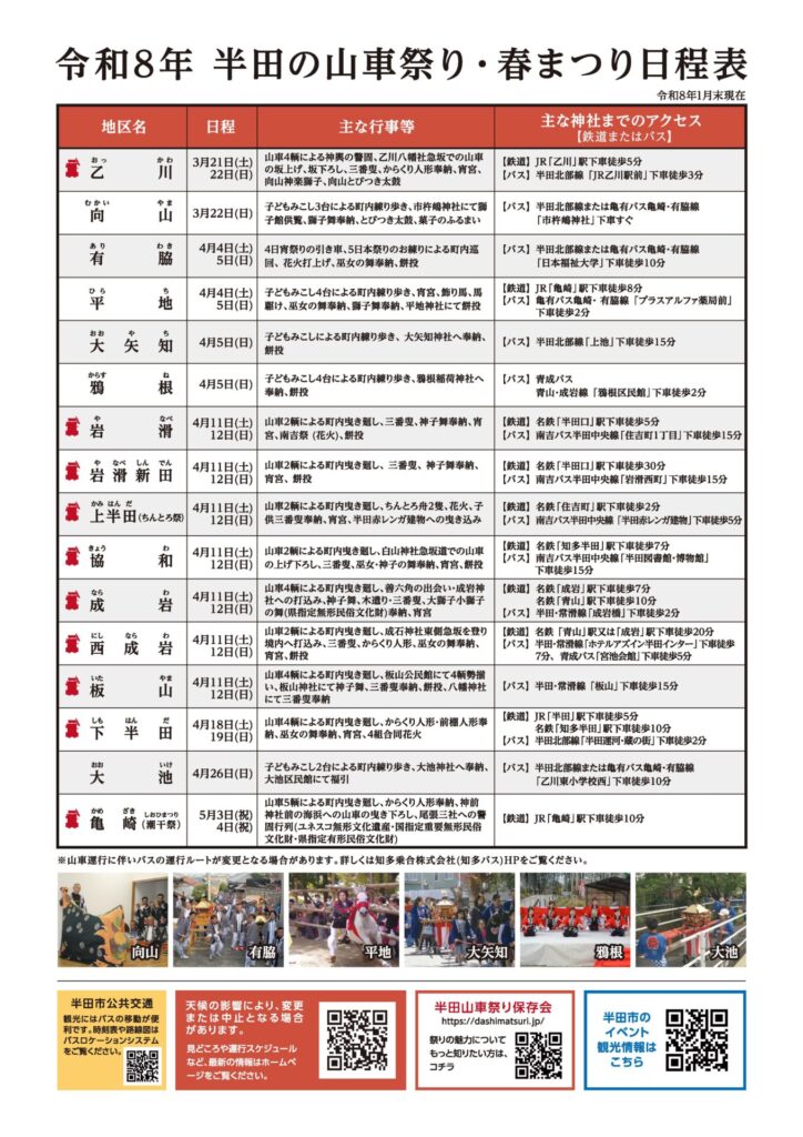 半田の春の訪れを告げる春祭りが、いよいよ始まります。半田の春祭りの魅力をお楽しみください。